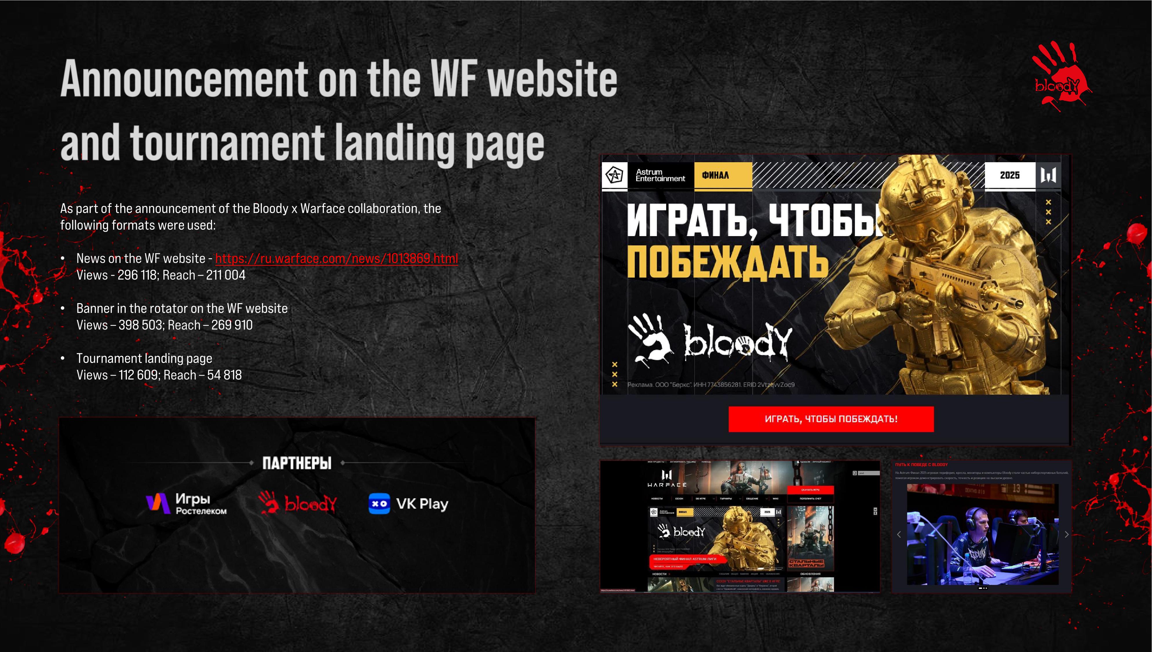 Bloody’s involvement in the Warface LAN Final ensured strong and seamless visibility across all key audience touchpoints - both on-site and during live broadcasts.